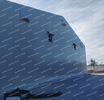 Временное каркасно-тентовое сооружение, предназначенное для гидро- и теплоизоляции в любое время года. Защищает объект строительства от атмосферных осадков и сохраняет тепло.
