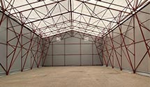 Классический тентовый ангар представляет собой сооружение, состоящее из металлического каркаса, обшитое снаружи тентовой ткань. Все сооружения проектируются в строгом соответствии с СП 20.13330.2016 и предназначены для конкретного региона установки.