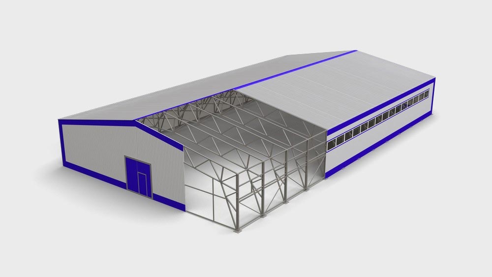 - Благодаря модульной системе каркасные здания, обшитые профильным листом, можно разбирать и собирать на новом месте, а так же увеличивать и уменьшать по длине размеры сооружений.