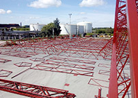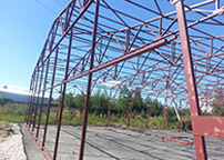 Когда все модули собраны, осуществляется их подъем и установка на опорное основание. Благодаря небольшому углу ската, конструкции легки и экономичны в монтаже.