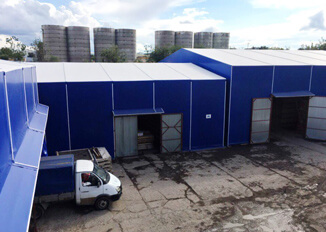 ООО «Сен-Гобен Строительная Продукция Рус» Задача: Построить склад в корпоративном стиле компании заказчика. Результат: Были учтены все пожелания клиента по цвету тентовой ПВХ ткани, цвету металлоконструкций по корпоративному RAL, нанесен логотип, смонтированы окна. |