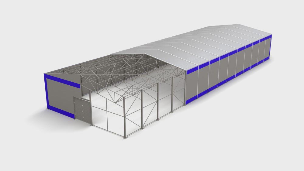 Классический тентовый ангар представляет собой сооружение, состоящее из металлического каркаса, обшитое снаружи тентовой ткань. Все сооружения проектируются в строгом соответствии с СП 20.13330.2016 и предназначены для конкретного региона установки.