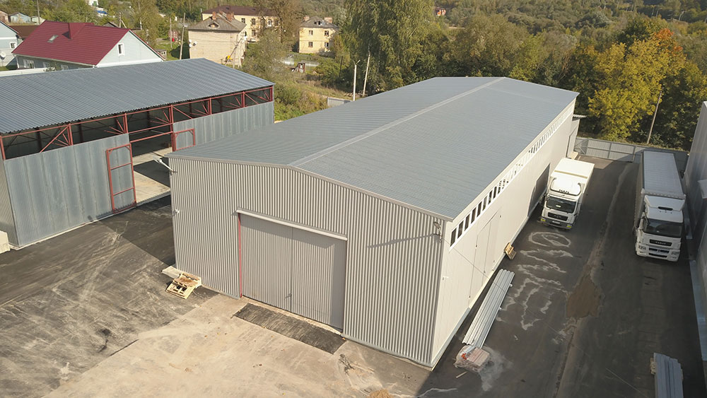 - Благодаря модульной системе каркасные здания, обшитые профильным листом, можно разбирать и собирать на новом месте, а так же увеличивать и уменьшать по длине размеры сооружений.