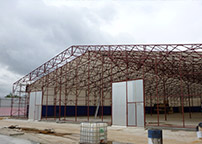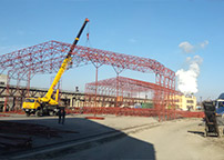 На установленном и закрепленном каркасе начинается монтаж межмодульных проемов и торцов здания.